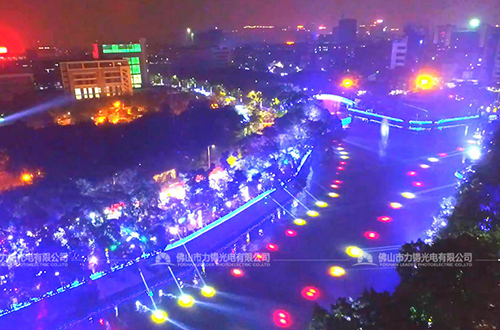 彩色汾江項目設計按照“一軸,兩帶,多點”的燈光創意理念,把規劃地段凝聚成一幅以剪紙、粵劇等佛山最具代表性的文化元素,結合現代、時尚、科技等元素,展現出一幅豐富立體的燈光巨卷。